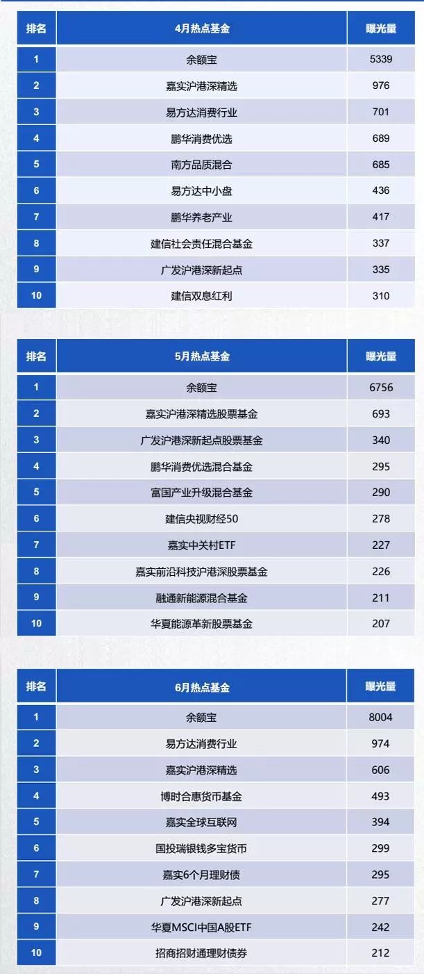 通过多月的严格筛选,我们从当前的投资热点出发,从热点基金、品牌曝光、收益排名、市场规模、行业舆情等为维度出发,通过慧科讯业独立的第三方视角和定量与定性分析得出了一份大数据榜单,并且定期发布。