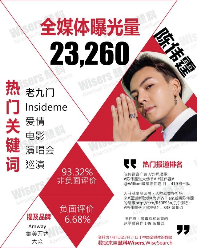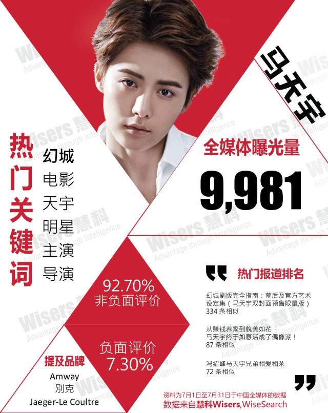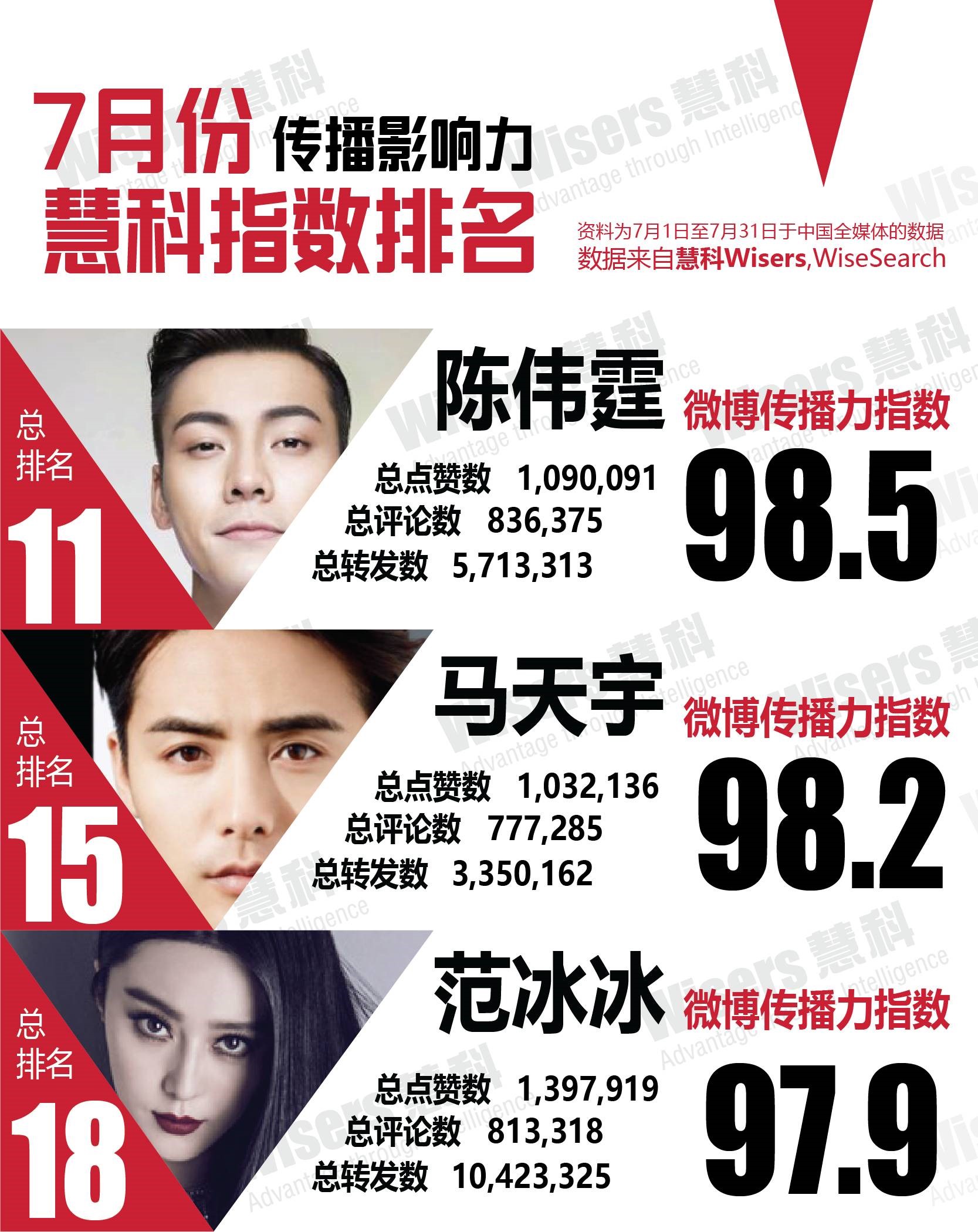 【摘要】本期慧科讯业AI大数据媒体监测时间,慧科小编继续为大家介绍慧科微博传播力指数,根据慧科社交媒体监测平台显示,七月份的KOL黑马分别是William威廉陈伟霆、马天宇、范冰冰,接下来我们会用慧科大数据告诉大家为什么他们是七月份的黑马?