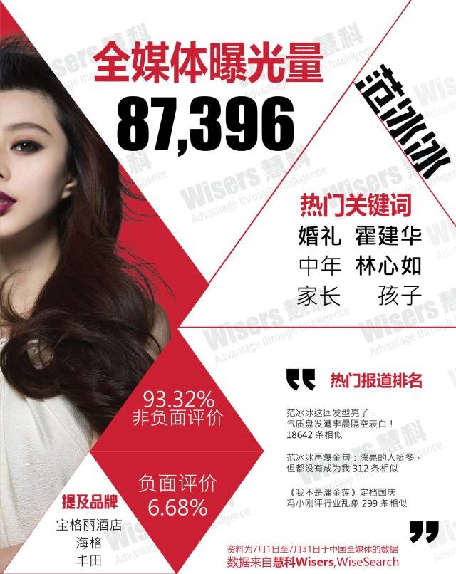 咱们范爷的微博人气应该从她与李晨公开恋情开始,很快他们的恋情获得大批网友的祝福。随后便经常大晚上在微博秀恩爱,不少还是单身的粉丝纷纷哭着留言说“半夜虐狗,再见!!”,“大晚上我回去吃狗粮了”……。而七月又因出席姐妹林心如的婚礼而被大批网友催婚,引起大量粉丝的互动,成为七月KOL黑马No.3。