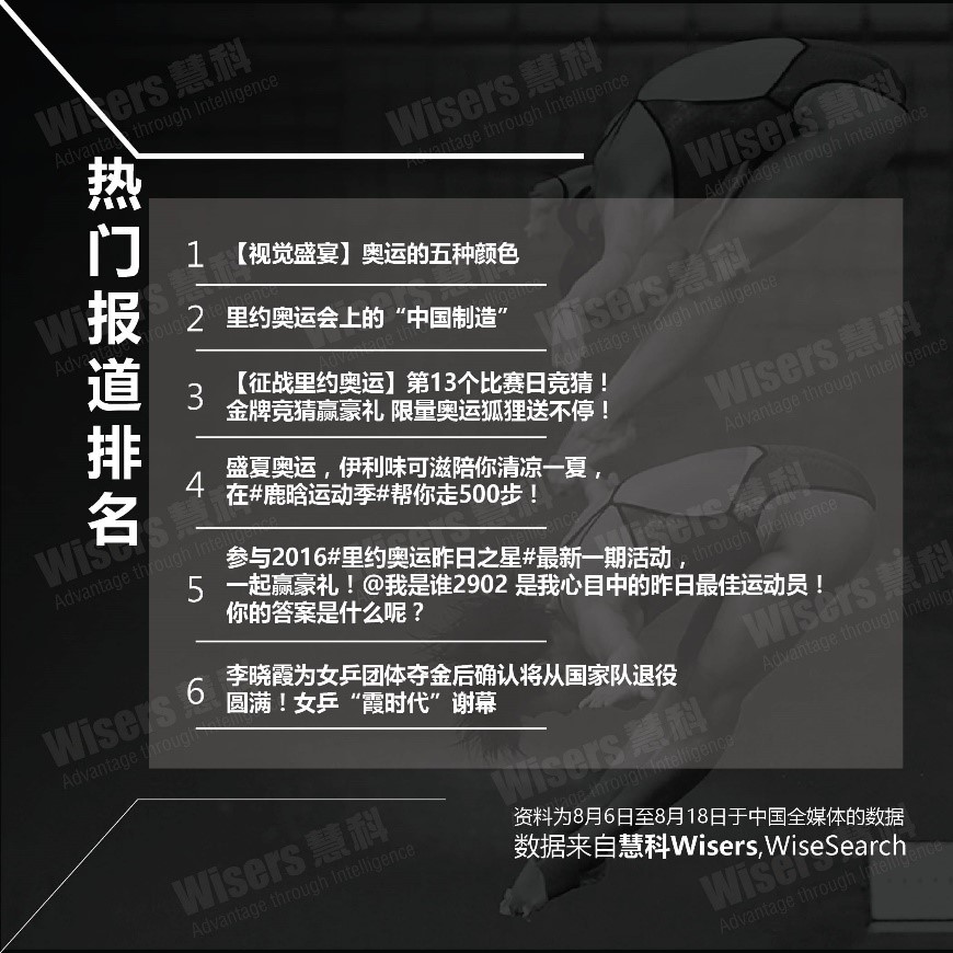 【摘要】首个在南美洲举办的奥运,令到全球目光焦点近日也放在这届综合性运动会。夺目耀眼的开幕式先声夺人,之后再到体育健儿斗到你杀我活的精彩比赛,现在奥运热度不断升温,所以本期慧科讯业AI大数据媒体监测时间,慧科小编为大家带来奥运这个题目,透过利用慧科旗下产品WiseSearch及WiseSocial,以多维度为大家解读奥运盛况!