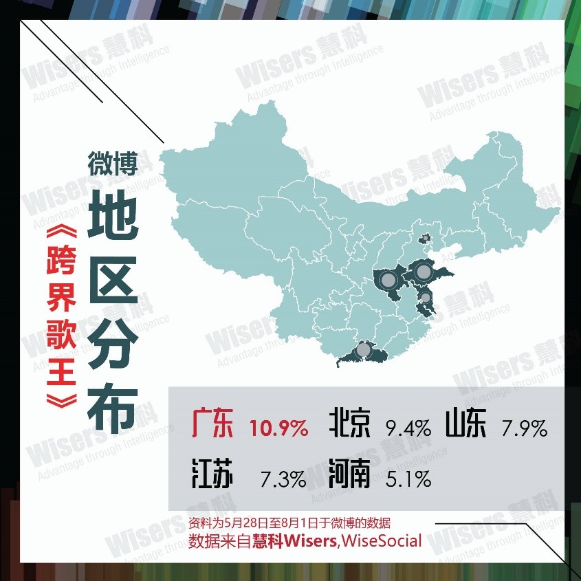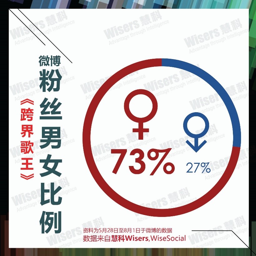 《跨界歌王》从5月28日晚开播,截至8月1日,节目已播出十期。不断出新的明星阵容与创意表演,在实力吸睛的同时,收视同样获得不俗成绩,网络上更是引起广泛热议。《跨界歌王》多位参演嘉宾的多首歌曲长期霸屏音乐多个排行榜,并多次夺得NO1。《跨界歌王》话题热度持续高企, #跨界歌王#及多个子话题连续几周蝉联“热门话题”及“疯狂综艺榜”第一名。在大数据时代,《跨界歌王》引领各项数据,花样承包热搜并强势霸屏,交出了耀眼的成绩单。