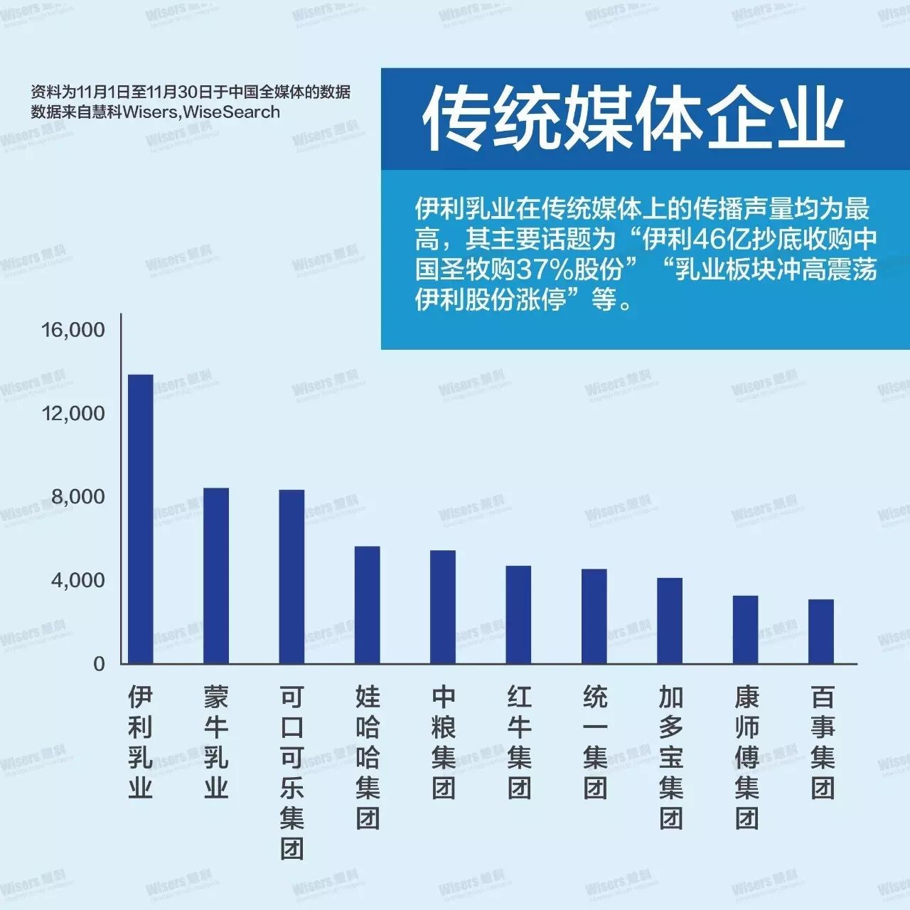 由于“伊利的‘8强’,为中国品牌打造出一张新名片”“他创出伊利,逼出蒙牛,自己却进了监狱”“快行动吧!伊利、可口可乐等大品牌年底都出新品了”等话题的大量传播,伊利乳业的用户分享量急速提升,口碑指数位列第一。
