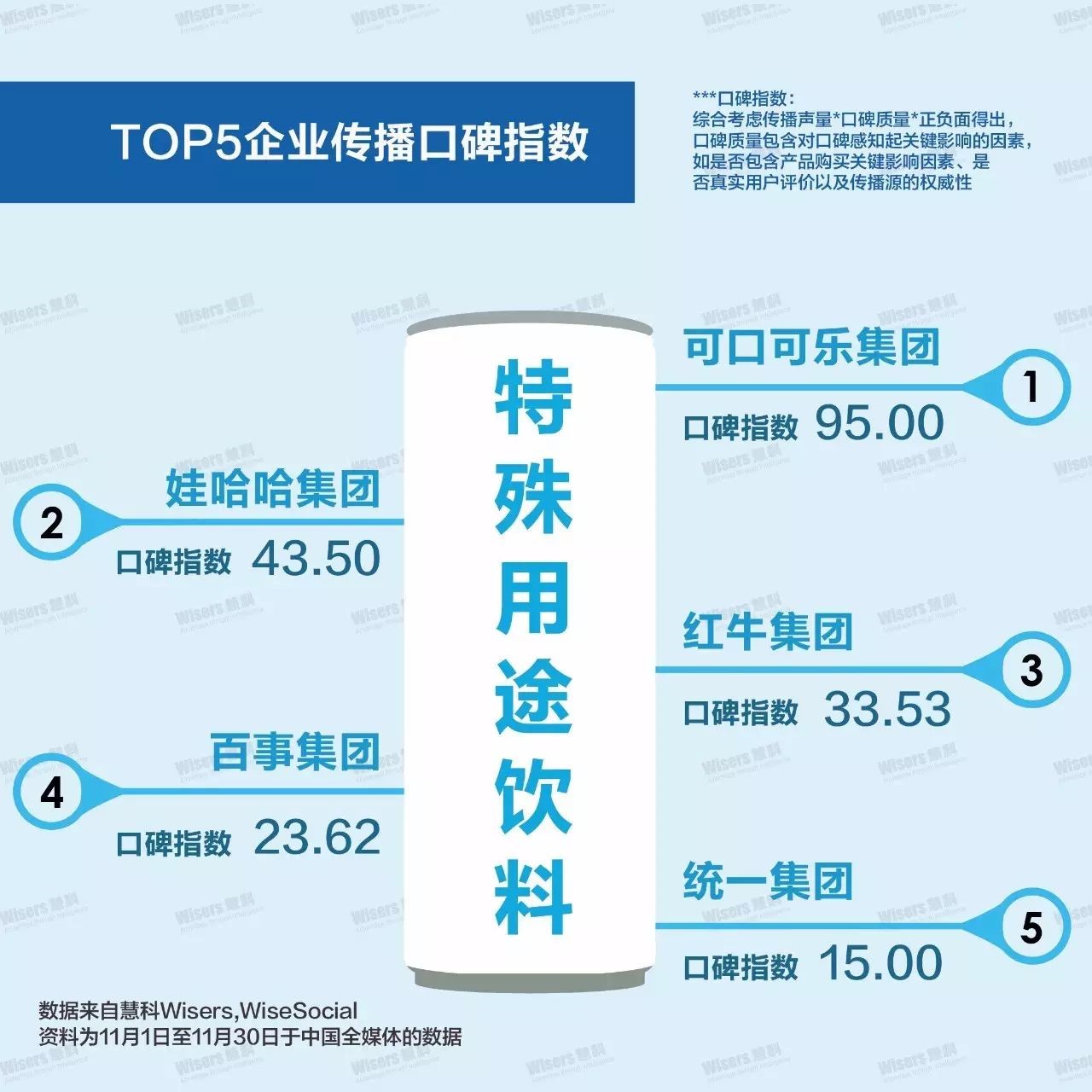 特殊用途饮料-TOP5企业传播口碑指数