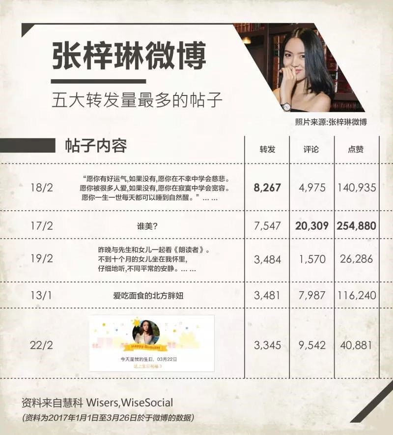张梓琳微博截取了节目中部分文字, “愿你有好运气,如果没有,愿你在不幸中学会慈悲。愿你被很多人爱,如果没有,愿你在寂寞中学会宽容。愿你一生一世每天都可以睡到自然醒。” 是近期转发量最多的一条微博。