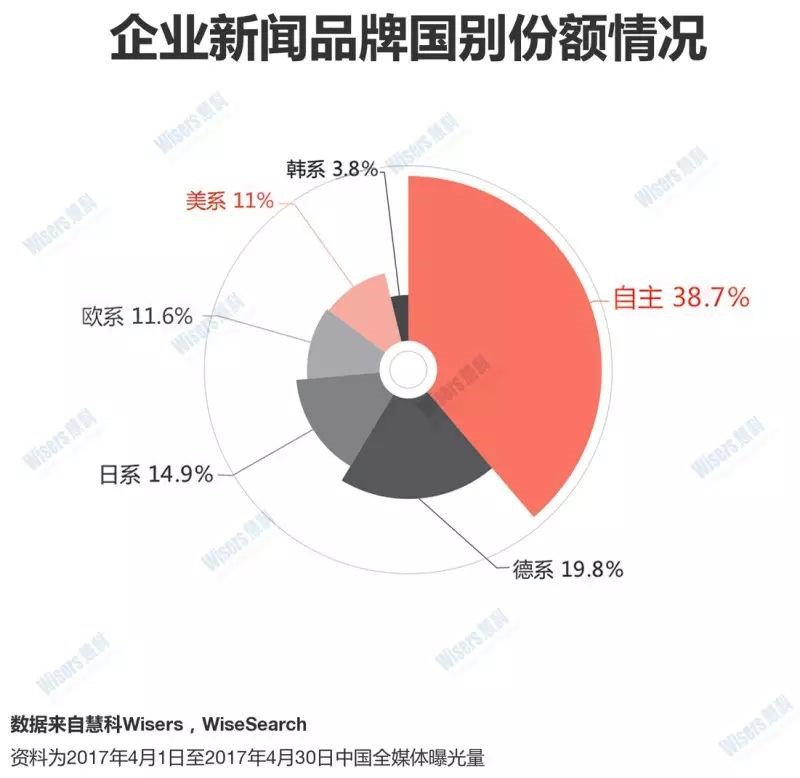 企业新闻国别份额中,自主车企最高,占比为38.7%。根据慧科大数据平台监测到的汽车企业新闻话题中,如大众在国内的新合资公司、长安汽车与蔚来汽车的合作、比亚迪发布大战略等均有自主车企参与其中。