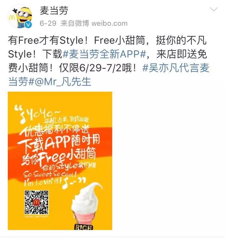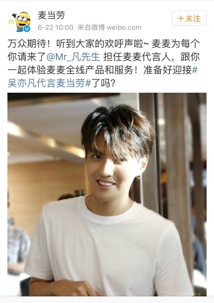 而这次freestyle带动节目迅速走火,麦当劳迅速跟进热点,在6月27日推出吴亦凡代言TVC(电视广告短片),并在6月29日至7月1日四次推送带有freestyle的微博图文。