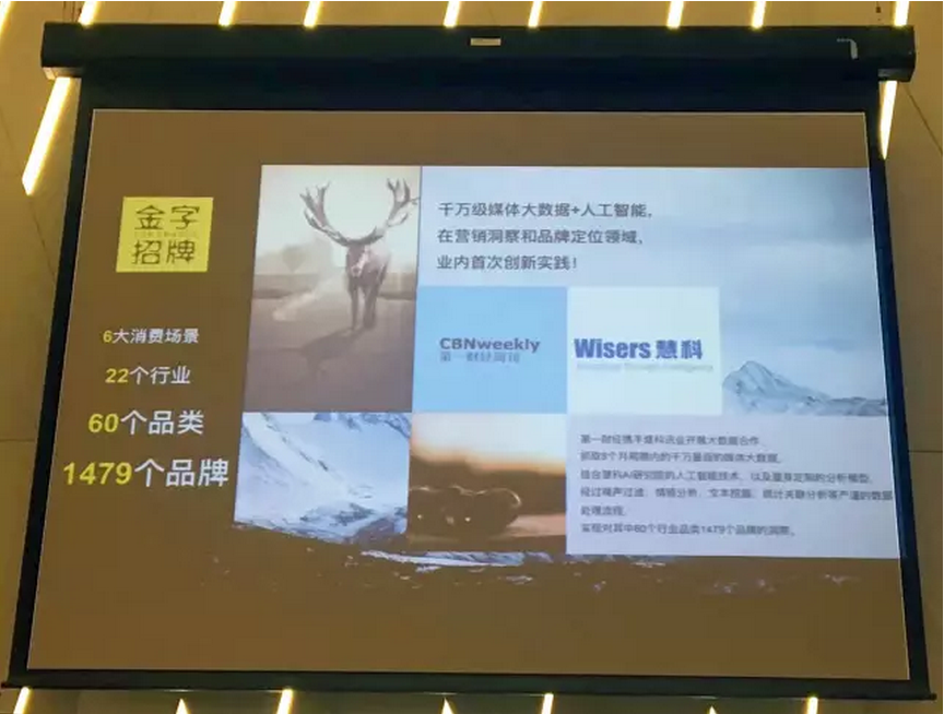 在演讲中,Jason宣布了慧科讯业与第一财经的合作——10月份即将发布的“第九届金字招牌榜”。在此次合作中,慧科讯业助力“金字招牌”首次引入千万量级全媒体大数据,并结合人工智能AI技术,洞察品牌及营销表现,涵盖了60个品类1479个品牌。