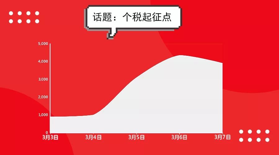 根据慧科讯业全媒体大数据平台媒体监测显示,3月3日至7日间,有关提高个税起征点话题的媒体讨论声量达到13164篇,话题传播趋势如下: