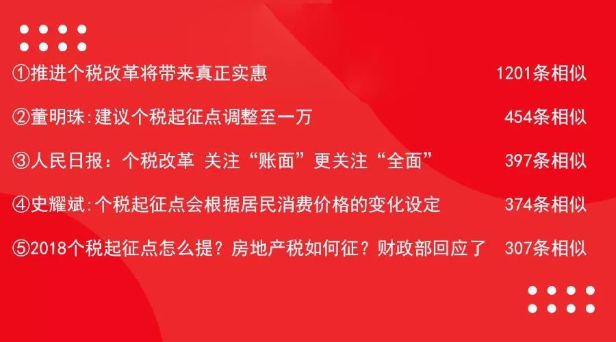 关于“提高个税起征点”话题的媒体报道中,个税改革对社会带来的影响、起征点的具体数据及实施办法等诸多角度成为媒体热议点。