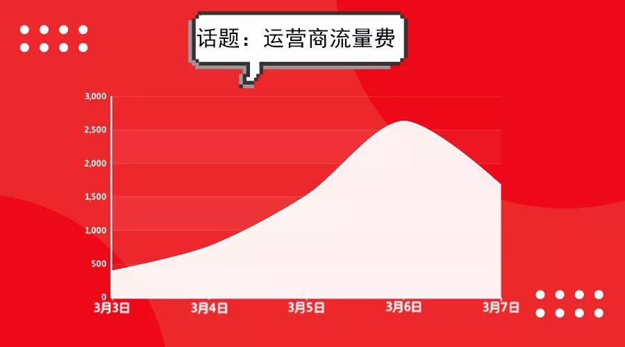 根据慧科讯业全媒体大数据平台媒体监测显示,3月3日至7日间,有关降低运营商流量费话题的媒体讨论声量达到6951篇,具体的传播趋势如下: