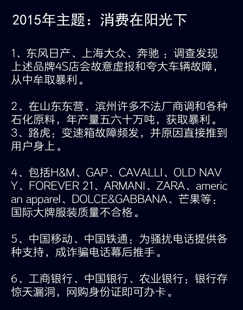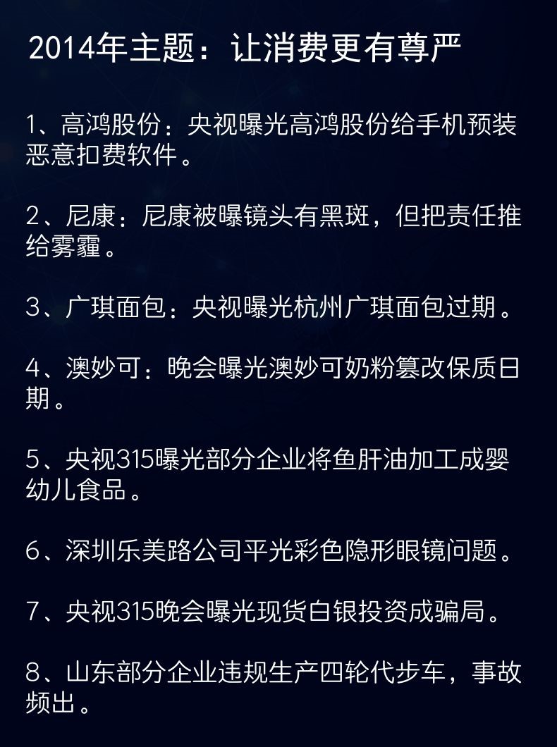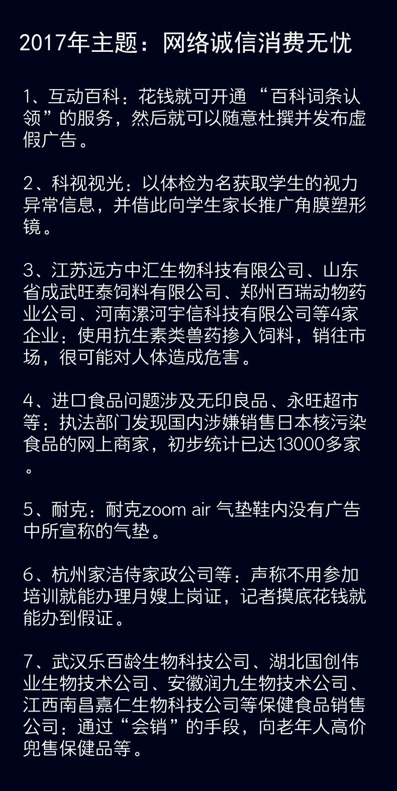 4、大型知名企业频频上榜,汽车、网信安全、食品等行业问题被连年曝光。