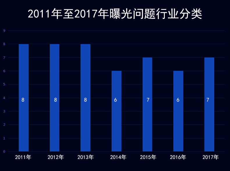 从2011年至2017年,晚会曝光的行业类目有降低趋势: