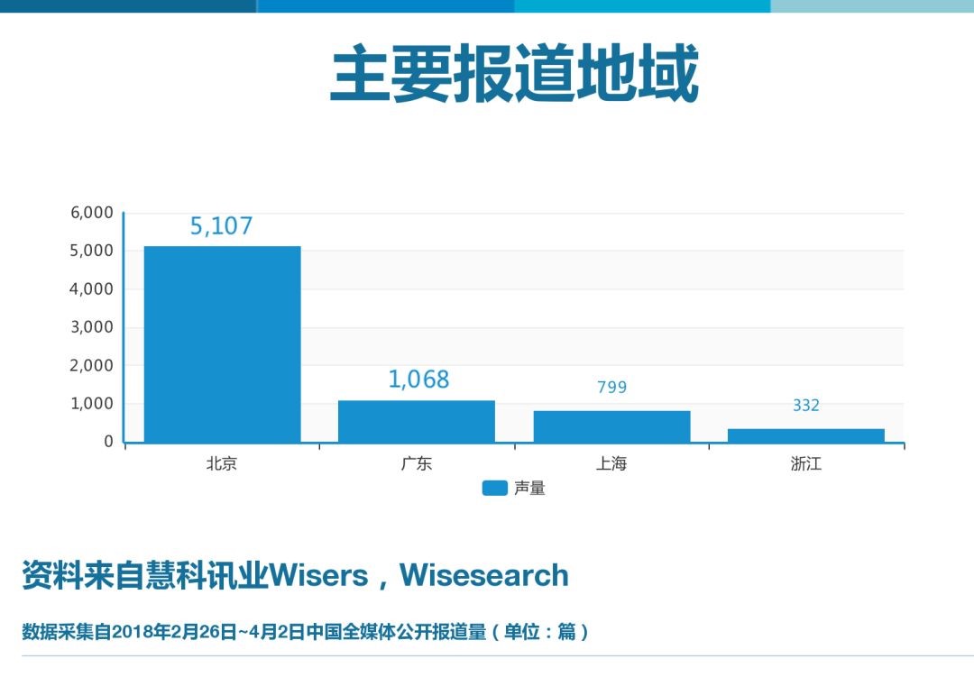 报道地域方面,北京媒体数量最多,监测期间共有5107篇报道量,其次为广东、上海等。