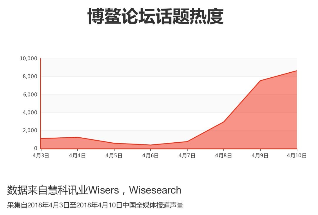 根据慧科讯业全媒体大数据平台的舆情监测显示,4月3日~10日,包含网站、报刊、社交媒体、论坛等媒体平台关于博鳌论坛的新闻声量达23240篇,其中在4月10日声量数据达到最高峰。