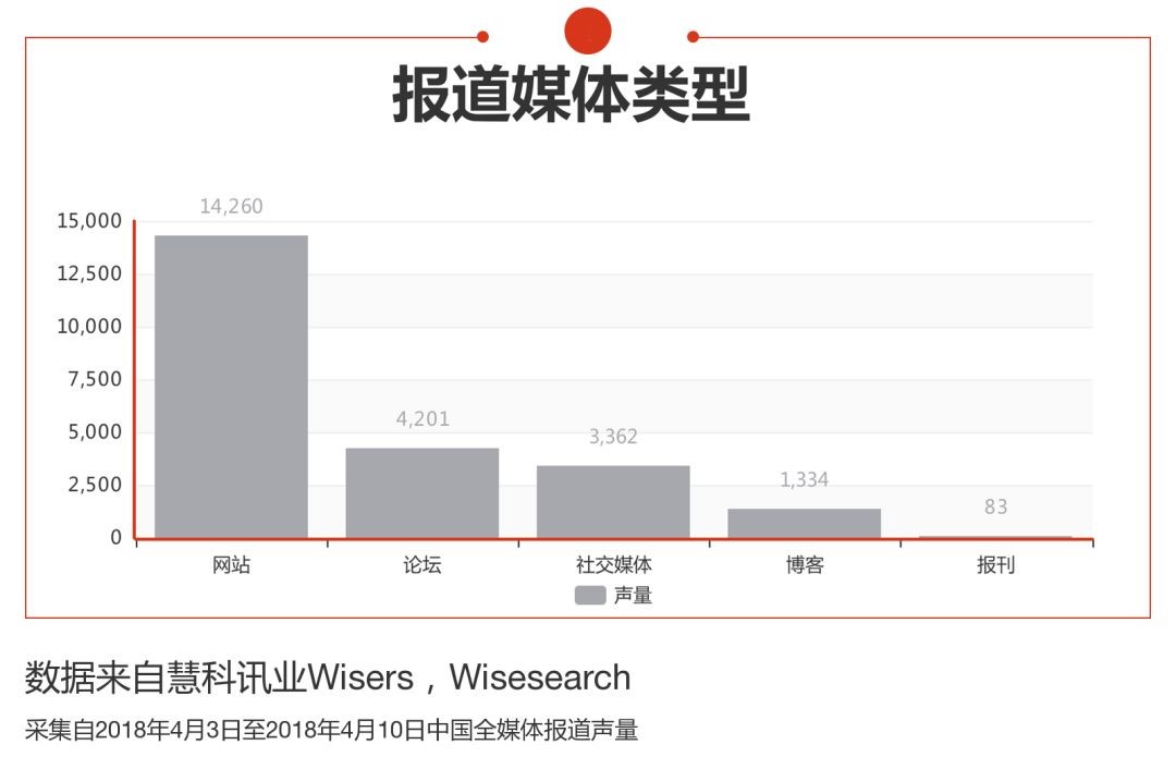 报道媒体方面则以门户网站为主,声量达到14260篇。具体数据如下: