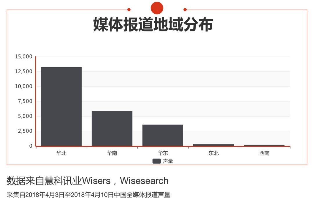 报道的地域方面,媒体报道集中在华北区域(以北京为主)。具体报道地域对比如下: