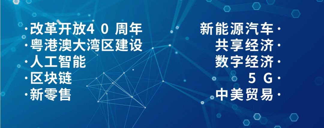 二、从议程上看,新零售、工业互联网等相关热点议题占相当比例。此外,在中国经济“改革再出发”的背景下,粤港港澳自贸区、海南旅游岛也将成为多场讨论的重点。以下十大热门政经主题媒体关注度较高: