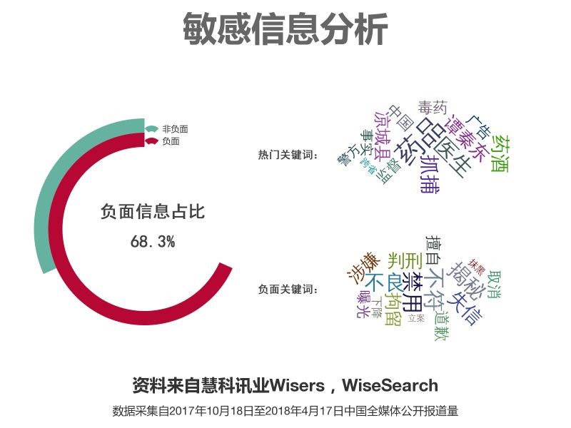 整体来看,该事件的近期集中爆发,经历了“双微KOL声援——网民舆论发酵——党报官媒热评——监管部门发声”的几个阶段。该舆情事件的直接结果就是,鸿茅药酒公司登上媒体头条,陷入动用权法谋私、过度宣传、屡次违法等负面舆论的旋窝。根据慧科讯业全媒体大数据平台舆情监测数据,该事件使得鸿茅药酒品牌负面报道率上升至68.3%。