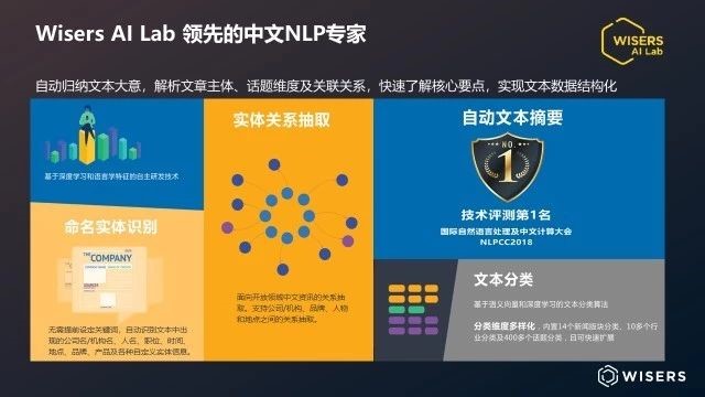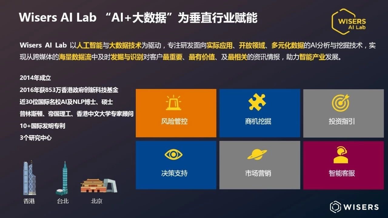 慧科讯业Wisers AI Lab自主研发的AI技术实现了从跨媒体的海量数据流中及时发掘与识别对客户最重要、最有价值、及最相关的资讯情报。