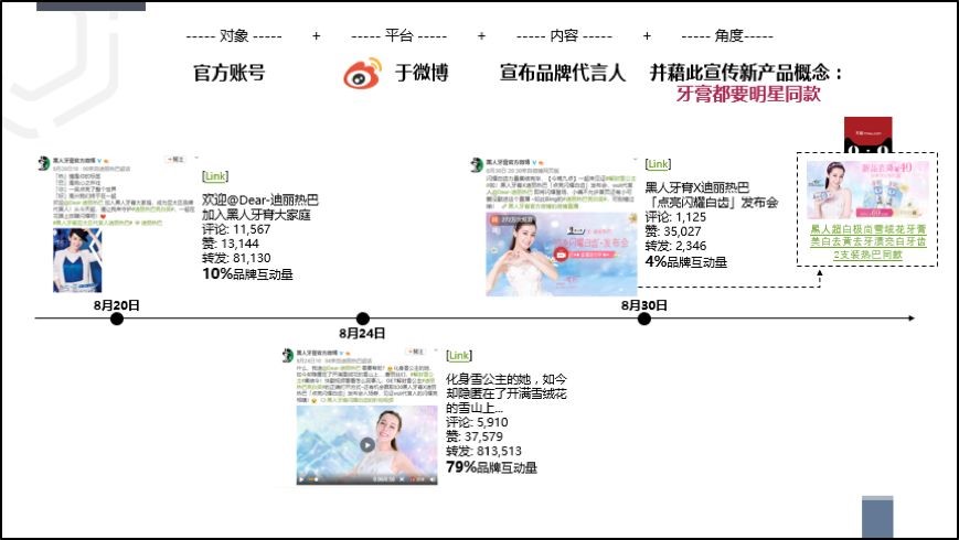 如今年8月份某品牌宣布迪丽热巴成为新代言人,利用代言人本身的强大号召力,此举一出即激发了行业声量与互动量的峰值。该品牌趁热打铁,在宣布新代言人四天后, 发起围绕代言人的主题活动#解封雪公主#,并注入故事元素预热新品发布,同时线上直播的新品发布会,让“热巴同款”牙膏受到粉丝热捧。