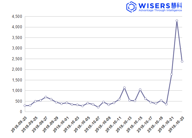 恰逢周末,事件一经曝出,该爆料文章点击量已超10万+。21日,该公众号继续爆料,称马蜂窝开始销毁证据,业内媒体开始跟进,事件继续发酵。22日马蜂窝一纸诉状,状告爆料公众号侵犯名誉权,大众媒体跟进,舆论声量进一步升级,相关报道量较常规数据飙升超8倍。
