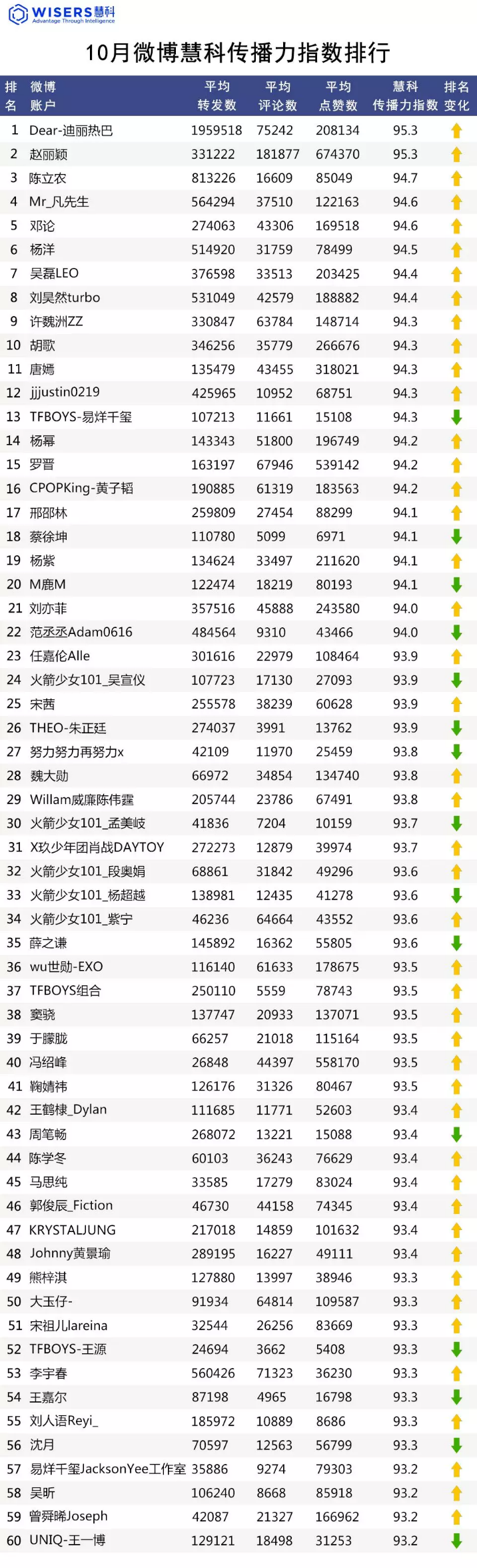 慧科传播力指数排行Top60