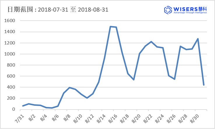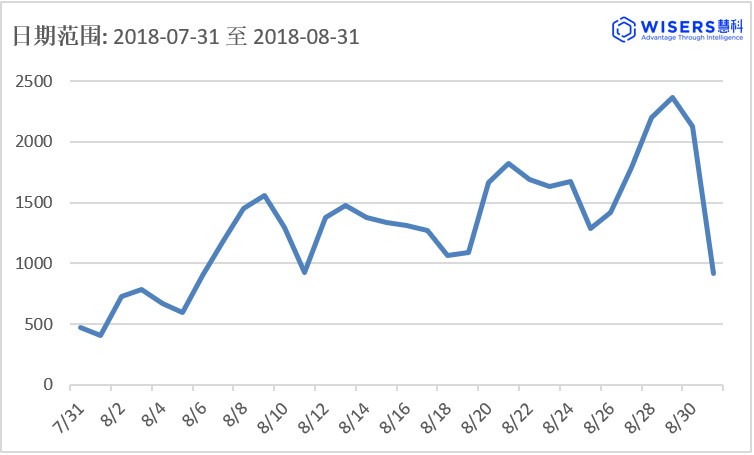 慧科讯业全媒体监测数据显示,《天盛长歌》传播声量变化起伏较大,8月14日首播日,传播声量逼近1500篇次,随之数据急剧下降,整体热度低位徘徊,日均数据仅维持在800篇次左右。