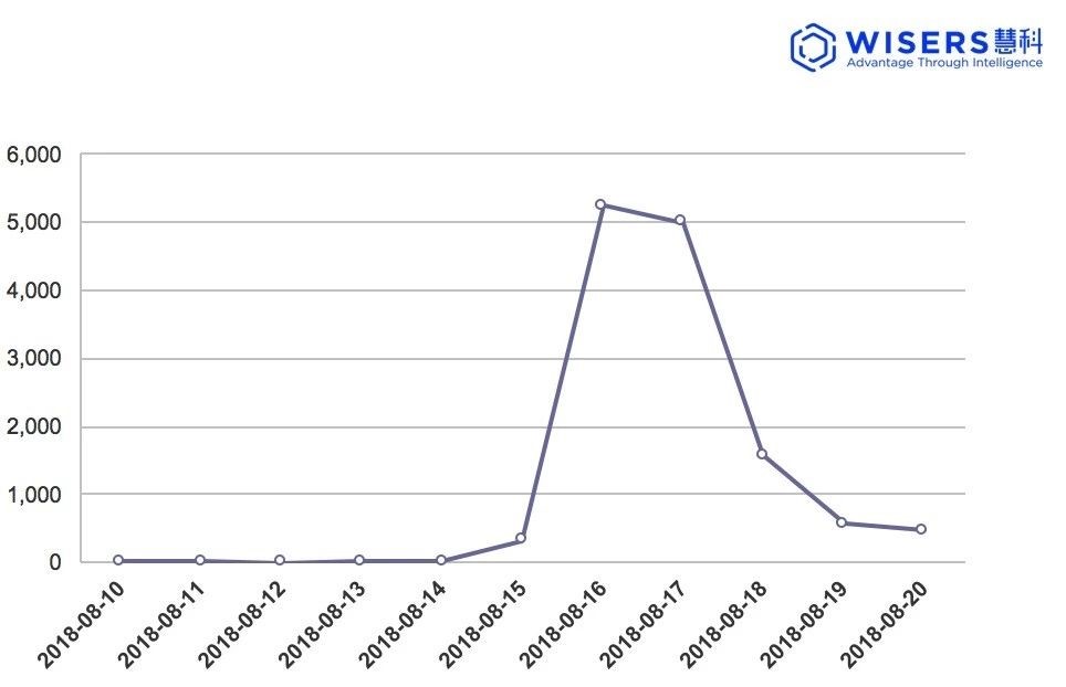 8月16日,南方周末、搜狐科技、凤凰网、腾讯科技等多家媒体先后发布红芯疑似造假的新闻。红芯被爆“造假”、“抄袭”,与之相关的传播声量迅速飙升,以前宣称的完全自主研发实则只是贴牌Chrome浏览器。造假新闻爆出后,舆论一片哗然。本为小范围行业性新闻事件因引发各界热议,其影响力持续升级,当日传播声量飙升至5241篇次。