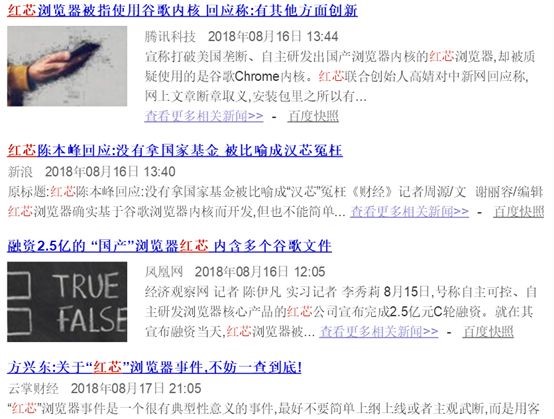 8月15日,事件仅在科技圈和金融圈小规模传播,尚未进入大众视野,但还未等二次传播,影响力持续发酵,红芯浏览器就已经“摊上事”,舆情也随之急转直下。