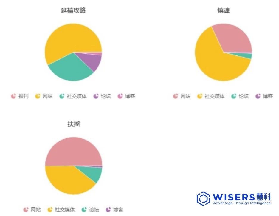 《镇魂》在社交媒体热度占据绝对优势,《延禧攻略》则重点布局网站,而《扶摇》网站和社交媒体两手抓,双重引流。