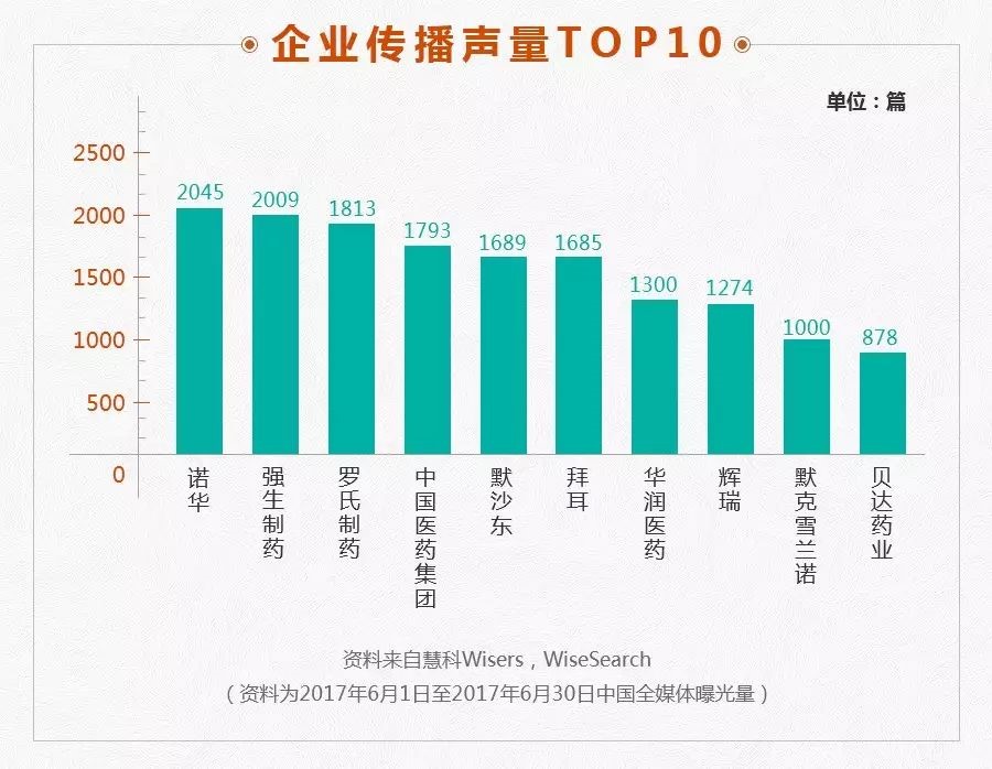 【摘要】本周慧科讯业全媒体行业大数据时间,慧科将为大家呈上2017年6月《医药行业传播分析报告》内容,为您呈现2017年6月国内医药行业的新闻传播态势、传播热点和市场分析。本监测期内,企业新闻中诺华多为产品研发、仿制药以及本月诺华负面行贿事件相关报道,声量位居第一。 相关信息为您的经营管理提供参考。