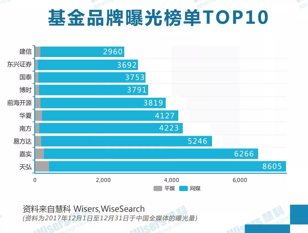 【摘要】本期慧科讯业全媒体行业大数据时间,慧科为您呈上2017年12月基金行业媒体监测分析内容,让我们一起来回顾基金行业舆情环境及传播内容,解读行业整体的传播现状,洞悉行业发展趋势。本月总体新闻量环比下降,品牌曝光方面,天弘基金(余额宝)保持第一;热点营销话题中,华泰柏瑞的“华泰柏瑞战略新兴产业基金重磅首发”曝光量居首;热点产品中,主要是绩优产品以及“爆款”产品。相关信息为您的经营管理提供参考。