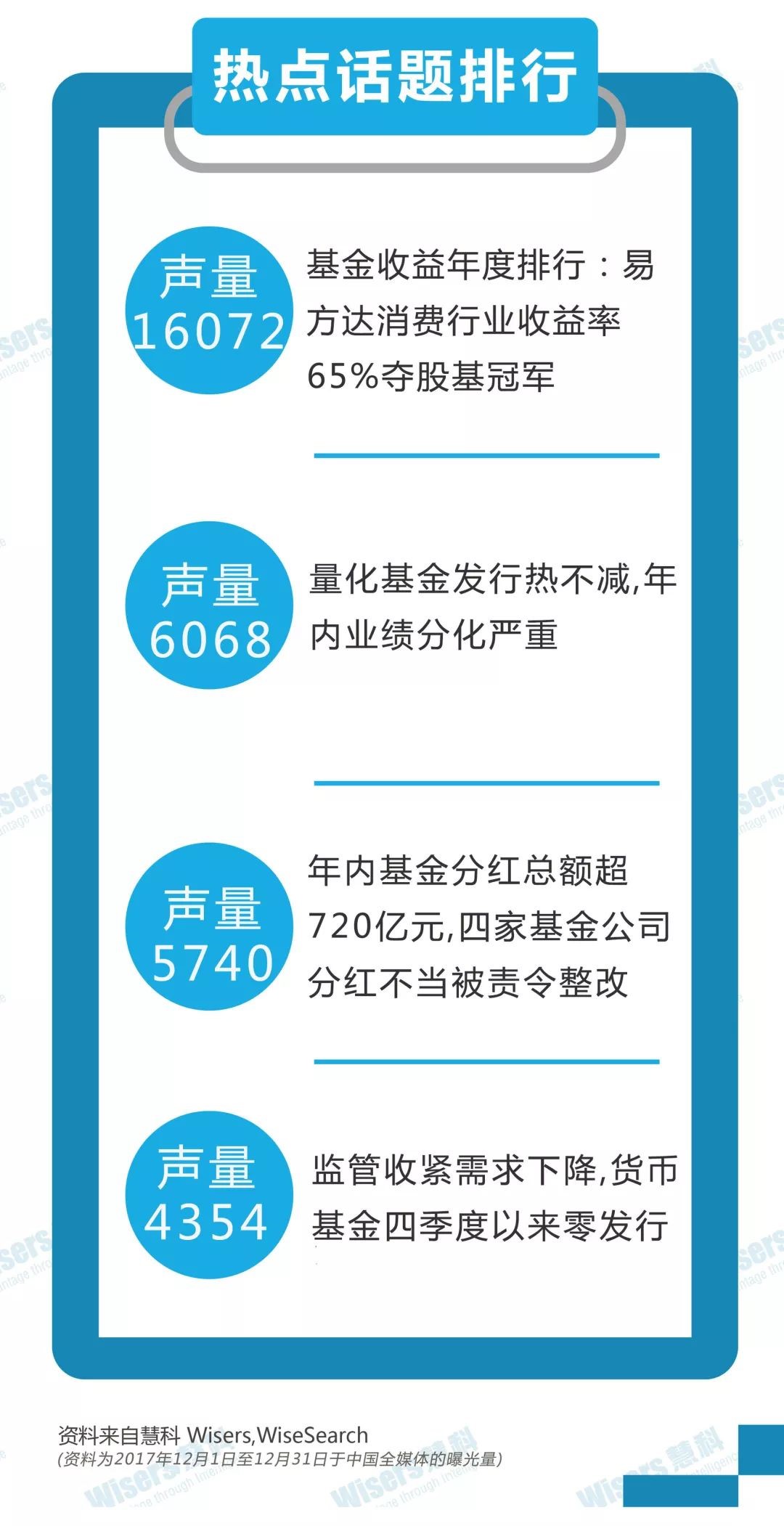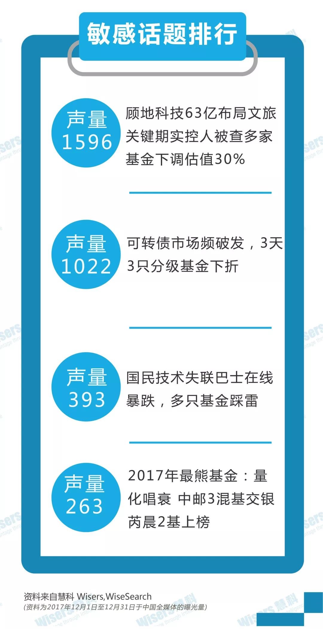 2017年12月,基金行业敏感新闻曝光量与去年同期对比上升10.4%,较上月相比新闻量环比上升48.1%,值得关注。