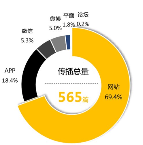 根据慧科讯业全媒体平台数据显示,网站传播及APP传播占据舆情声量第一阵营,此外,微信、微博等自媒体平台也贡献了一定声量。