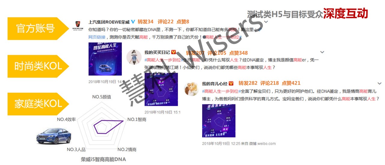 上市期间,荣威i5联合一点资讯、OPPO、微博KOL一起推出 #凭高能本事上封面# 话题,用户通过H5上传自己照片,有机会登上OPPO锁屏封面,吸引众多年轻用户关注参与。经明星人气带动、KOL大力推广,荣威i5微博话题 #高能人生一步到位# 被引爆,达1.5亿阅读量、4.4万讨论量,为车型上市聚集了充足人气。
