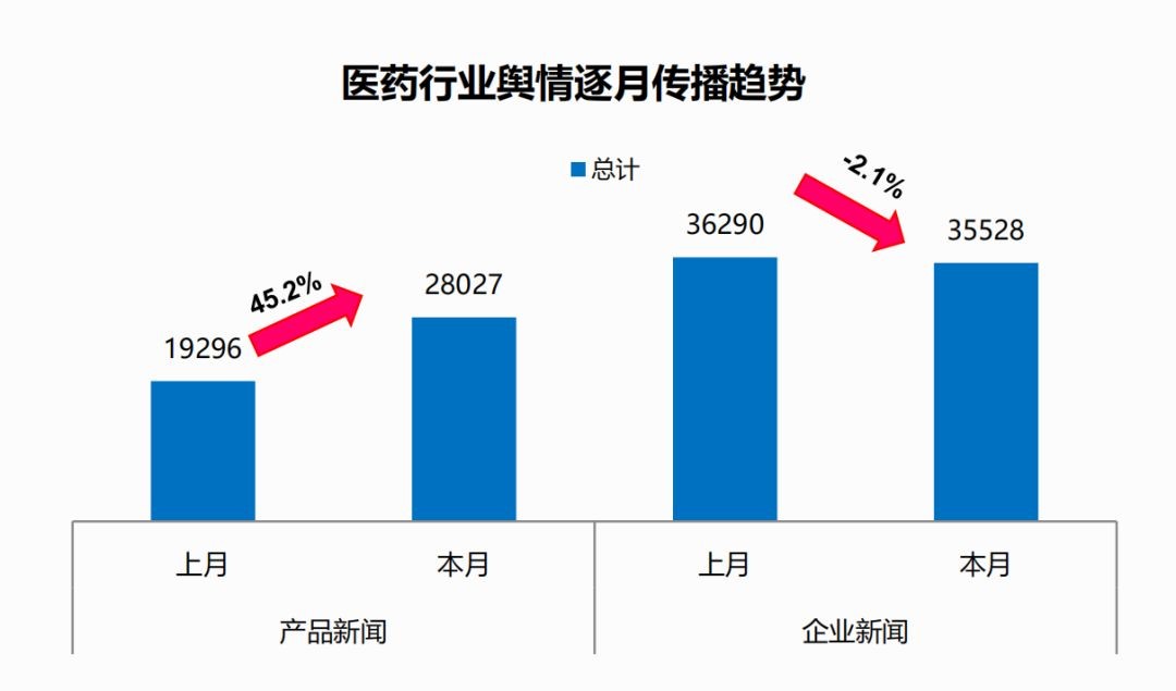 产品新闻28,027篇,占比达44.1%,产品层面新闻内容较为集中,药品定价/降价和医保/医改等相关报道较多。