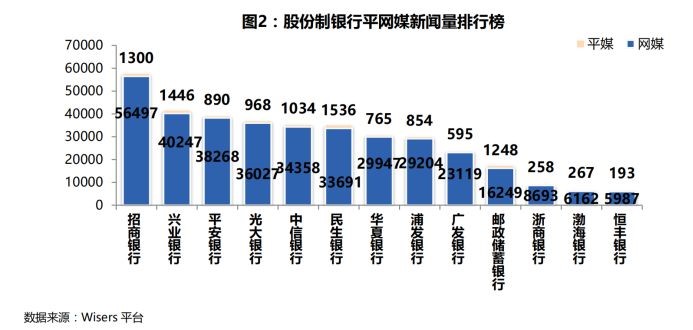 新闻排行量中,招商银行的新闻总量最多,兴业银行和平安银行的新闻总量分列二、三位,恒丰银行新闻总量最少。