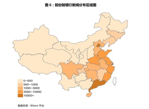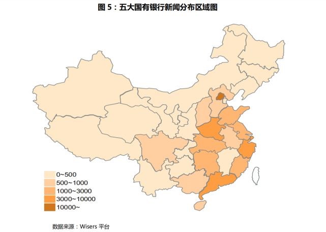 以下为五大国有银行和股份制银行的新闻报道的地域分布对比数据: