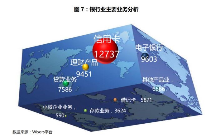 银行的各项主要业务中,关于“信用卡”的新闻量居首,共有12737篇报道,较上个月有所上升。“融 360 在线信用卡发卡量破千万 多家银行获奖”、“兴业银行信用卡系统升级焕新 客户体验显着提升”等报道较多。