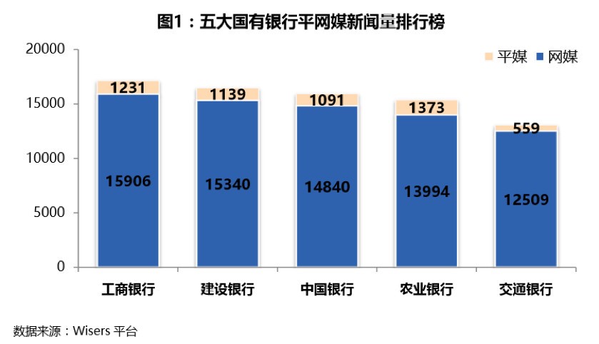 五大国有银行中,工商银行总体声量再度蝉联榜首,新闻总量达17137篇次,平媒报道量为1231篇次。建设银行排名第二,交通银行的新闻总量最少。