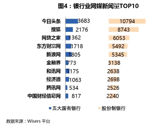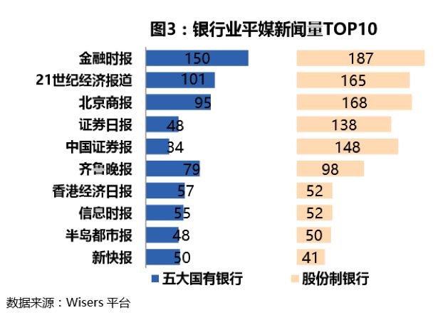 从银行类型来比较排名TOP10的平媒报道量,股份制银行多于五大国有银行。