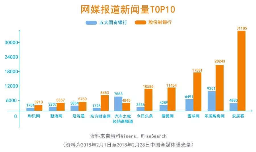 以下为参与银行业新闻报道的媒体的对比数据: