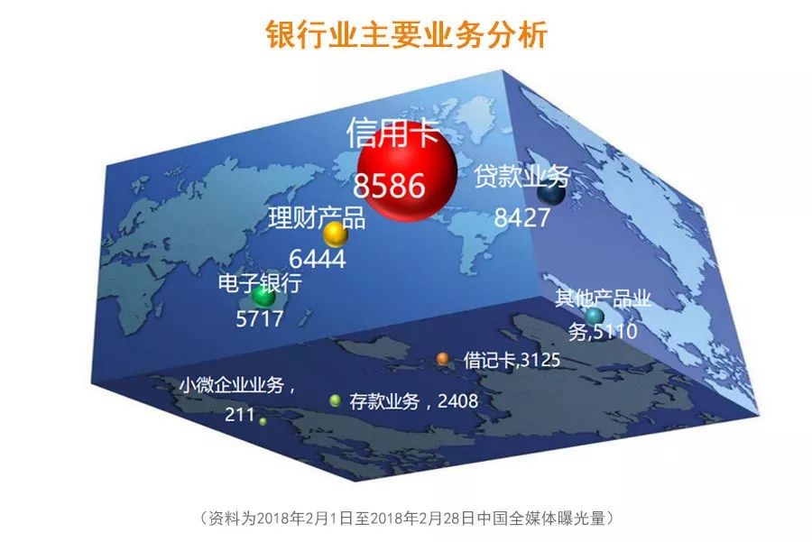 【摘要】本期慧科讯业全媒体行业大数据时间,慧科为您呈上2018年2月银行业媒体监测报告部分内容,您可了解银行业上月媒体传播情况和较受关注的大事件,2018年2月正值农历新春期间,银行业从业人员的薪资话题引发舆论热议。在银行业务动向方面,本月媒体对银行利率与地产开发相关话题的关注度明显提升,相关政策未来动向我们亦将持续关注。为您的经营管理提供参考。
