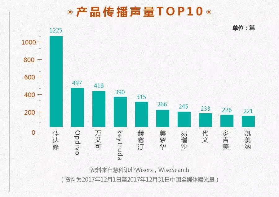 排名第二的品牌是Opdivo,多是在“意外!重磅抗癌药Opdivo有望治疗HIV感染?”等新闻中提及产品。