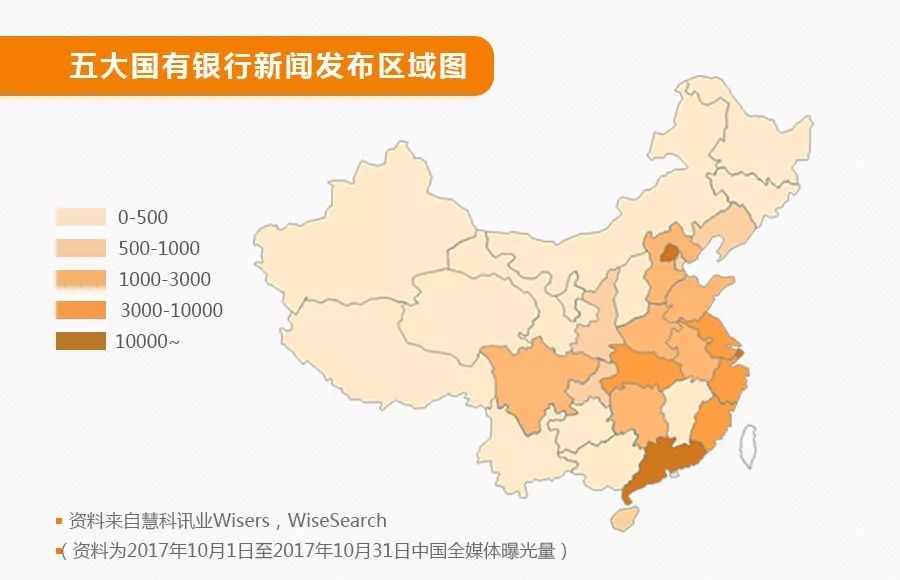以下为五大国有银行和股份制银行的新闻报道的地域分布的详细数据: