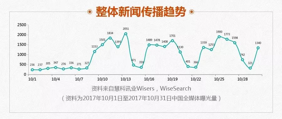【摘要】本周慧科讯业全媒体行业大数据时间,慧科为大家呈上2017年10月《医药行业传播分析报告》内容,为您呈现2017年10月国内医药行业的新闻传播态势、传播热点和市场分析。正逢十一长假,本月媒体内容相对减少。本月传播较广的新闻主要有“辉瑞13价肺炎疫苗断货或至年底 私立医院要价翻倍”“北京下月起可预约接种宫颈癌疫苗 售价580元一支” 和“葛兰素史克推出新疫苗 可阻止90%带状疱疹”等。十九大报告提出实施健康中国战略的信息也得到媒体关注。