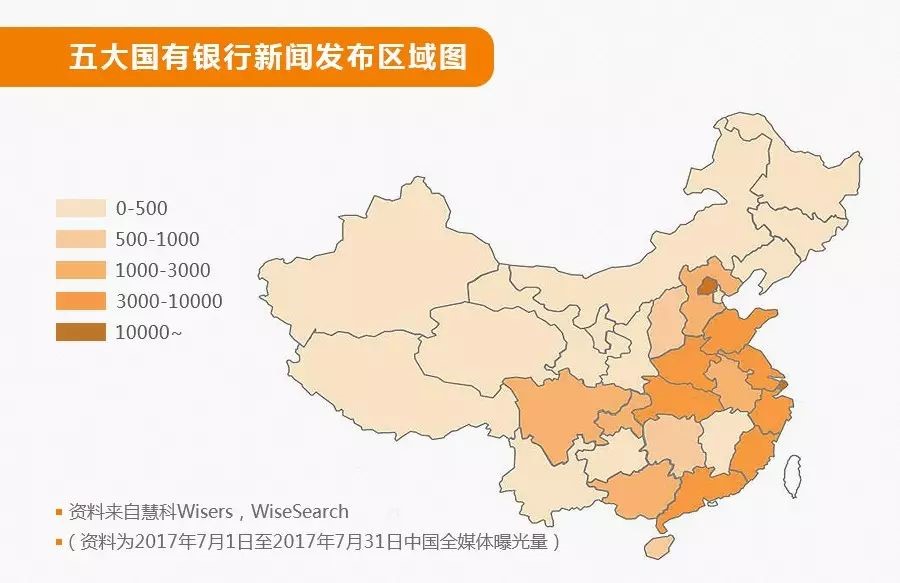 以下为五大国有银行和股份制银行的新闻报道发布地域分布的详细数据: