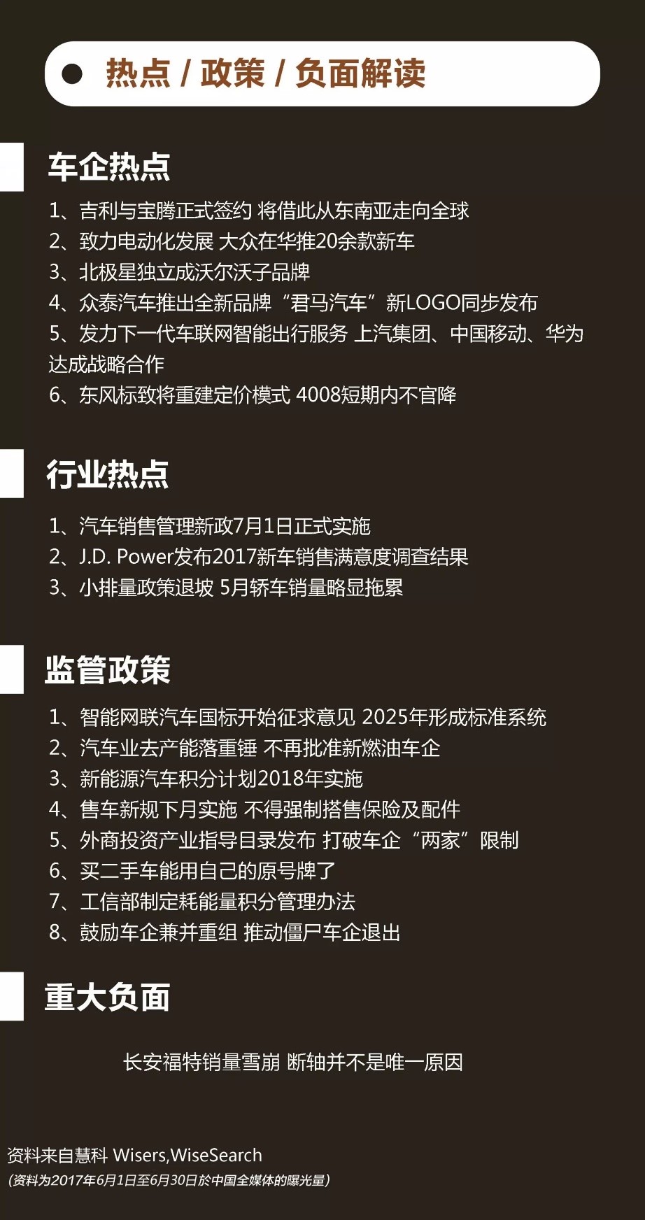 本文内容部分来源自慧科讯业有限公司汽车行业月度分析报告,以慧科讯业全媒体数据库平台媒体监测结果为研究基础,分析对象系媒体公开报道之信息数据库,其来源准确有效;但结论仅供参考,不作为投资意见。