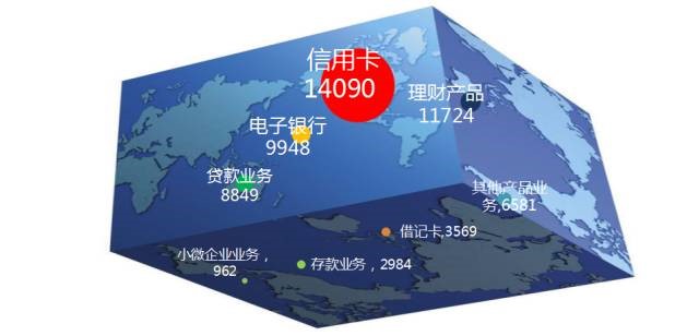 银行业各项主要业务中,关于“信用卡”的新闻最多,共有14090篇新闻,“银行争抢中间业务 信用卡柜面取现金额三级跳”“苏宁金融牵手交行信用卡 扫码支付最高立减50元”等报道较多。
