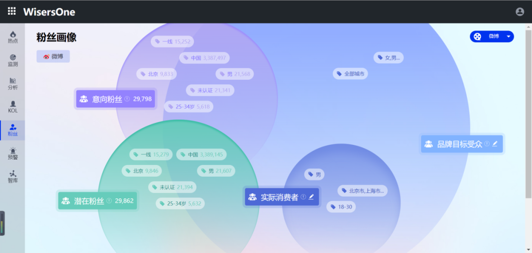 根据意向粉丝、潜在粉丝、实际消费者、品牌目标受众人群分析